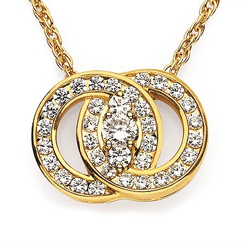 Diamond Marriage Symbol® Pendant In 14K Gold With Channel Set Rings And 3 Prong Set Diamonds Equaling 2 Ctw.
