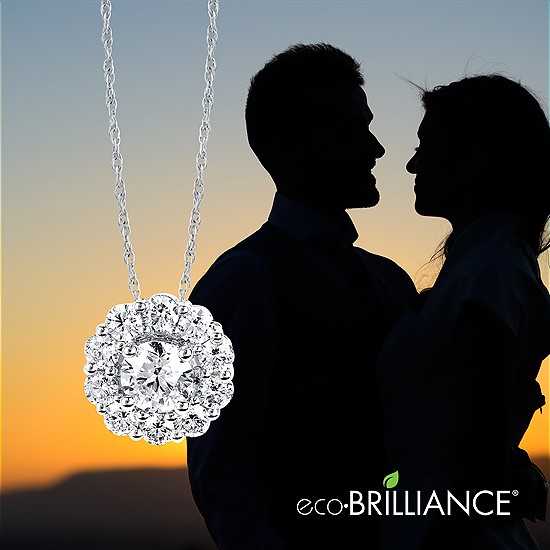 Eco-Brilliance® 1.20Tgw. Lab-Created Diamond & Created Sapphire Halo Pendant In 14K Gold