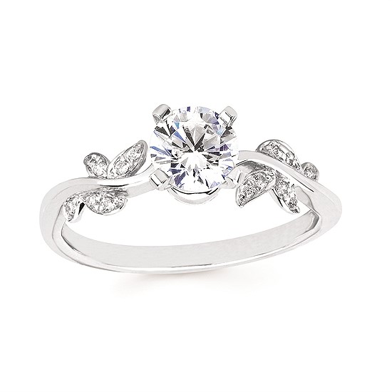 Engagement Ring Forever ElegantĀ® .06 Ctw. Diamond Semi Mount shown with 3/4 Ct. Round Center Diamond in 14K Gold