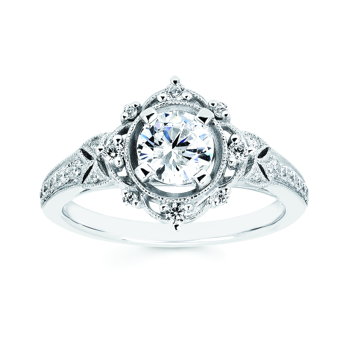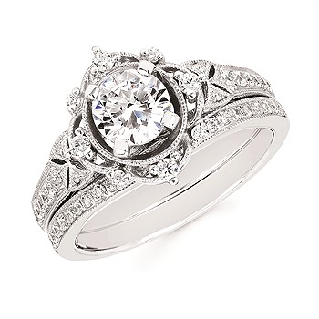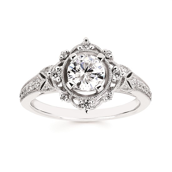 Engagement Ring Forever ElegantĀ® 1/5 Ctw. Diamond Semi Mount shown with 3/4 Ct. Round Center Diamond in 14K Gold