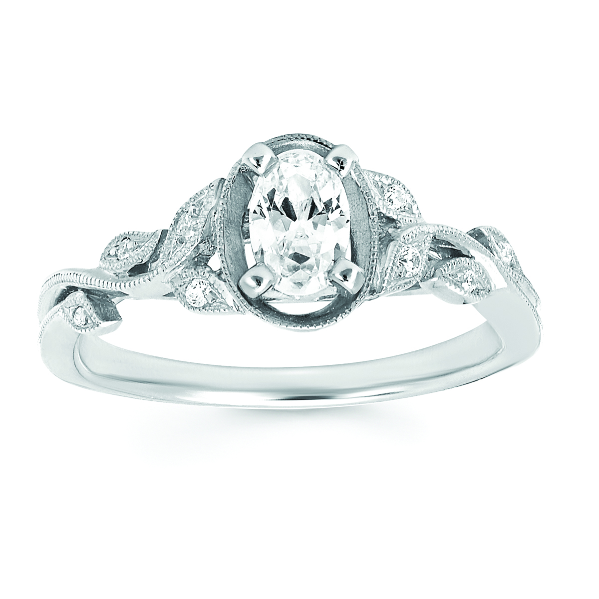 Engagement Ring Forever ElegantĀ® .05 Ctw. Diamond Semi Mount shown with 1/2 Ct. Oval Center Diamond in 14K Gold