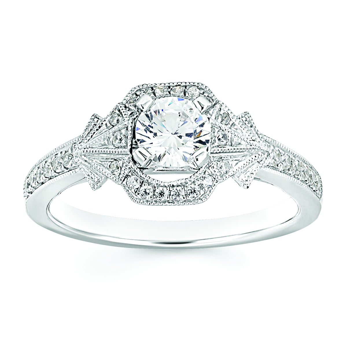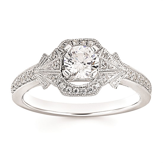 Engagement Ring Forever ElegantĀ® 1/8 Ctw. Diamond Semi Mount shown with 1/2 Ct. Round Center Diamond in 14K Gold
