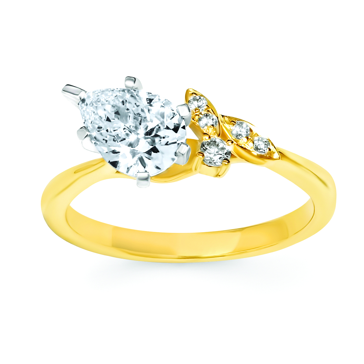 Engagement Ring Forever ElegantĀ® 1/10 Ctw. Diamond Semi Mount shown with 1 Ct. Pear Center Diamond in 14K Gold