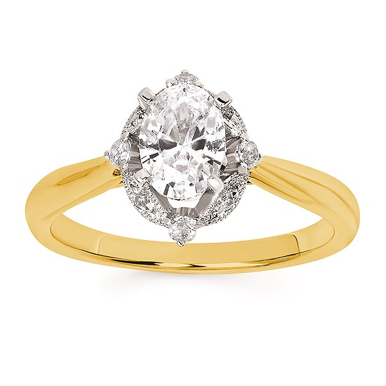 Engagement Ring Forever ElegantĀ® 1/10 Ctw. Diamond Semi Mount shown with 1 Ct. Oval Center Diamond in 14K Gold