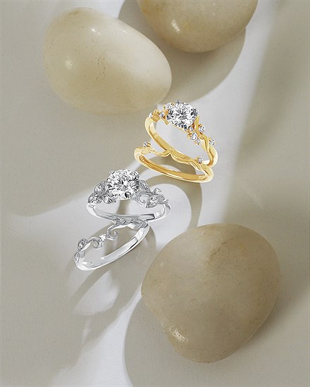 Engagement Ring Forever ElegantĀ® 1/6 Ctw. Diamond Semi Mount shown with 1 Ct. Round Center Diamond in 14K Gold