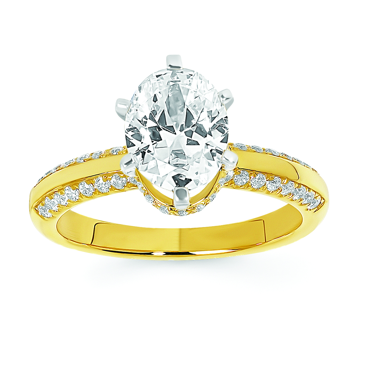 Engagement Ring Forever ElegantĀ® 1/3 Ctw. Diamond Semi Mount shown with 2 Ct. Oval Center Diamond in 14K Gold