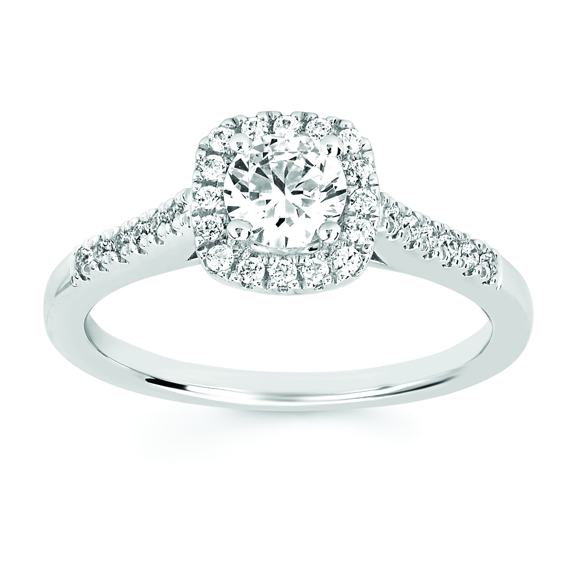 Engagement Ring Halo Bridal: 1/6 Ctw. Diamond Halo Semi Mount available for 1/2 Ct. Round Center Diamond in 14K Gold