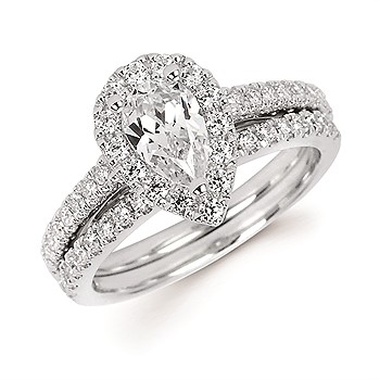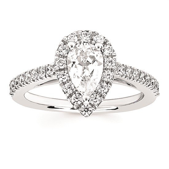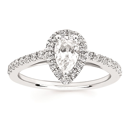 Engagement Ring Halo Bridal: 3/8 Ctw. Diamond Halo Semi Mount available for 3/4 Ct. Pear Shaped Center Diamond in 14K Gold