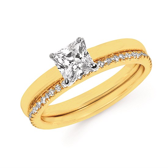 Classic Bridal: Hidden Halo 1/10 Ctw. Diamond Semi Mount Shown With 2 1/2 Ct. Princess Center Diamond In 14K Gold