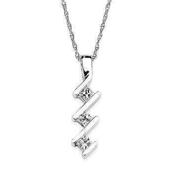 1/4 Ctw. Princess Cut 3 Stone Diamond Drop Pendant In 14K Gold With 18" Fine Rope Chain With 18" Chain
