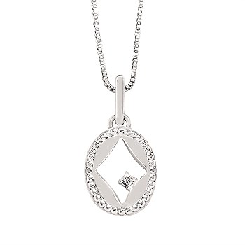 Diamond Cutout Pendant In Sterling Silver With 18" Chain